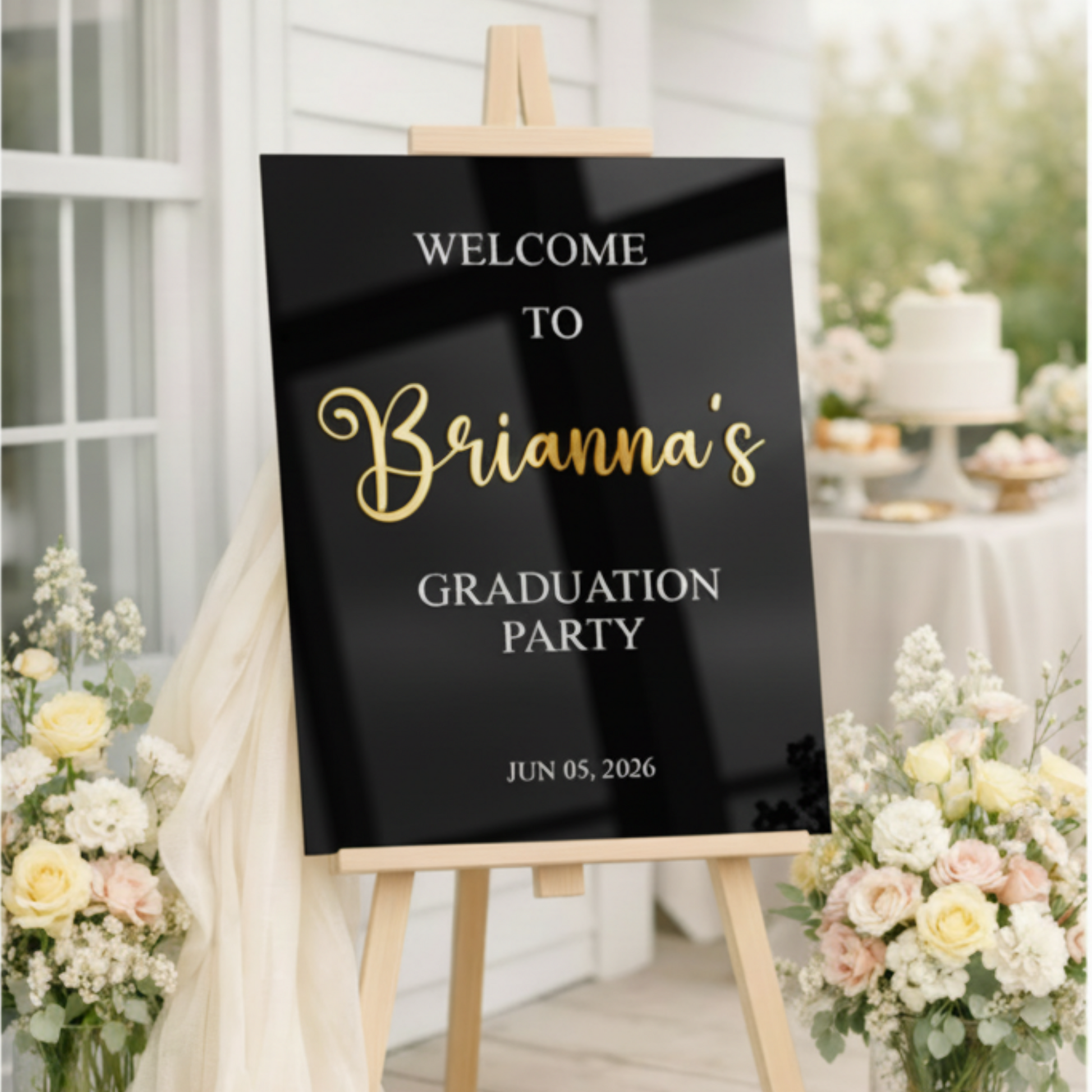 Make your special day unforgettable from the very first moment with this elegant personalized acrylic graduation welcome sign 🤍. Designed to create a warm and stylish first impression, this modern sign adds a timeless touch to your wedding décor.
