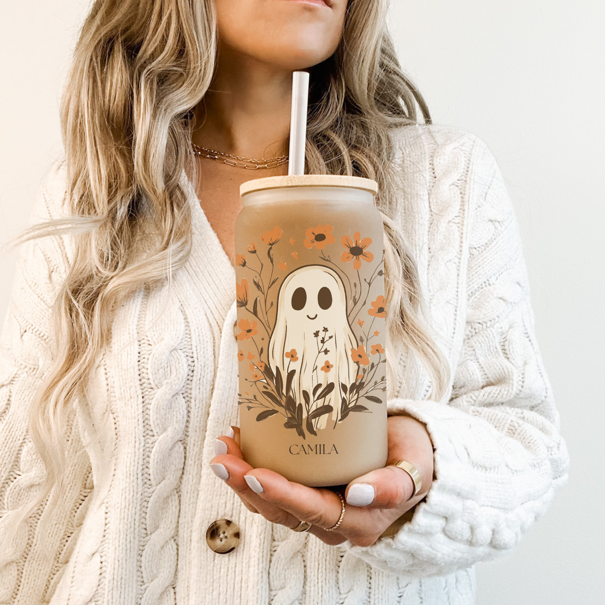 ✨ Frosted Glass Cup with Bamboo Lid & Straw – 16oz ☕🧊