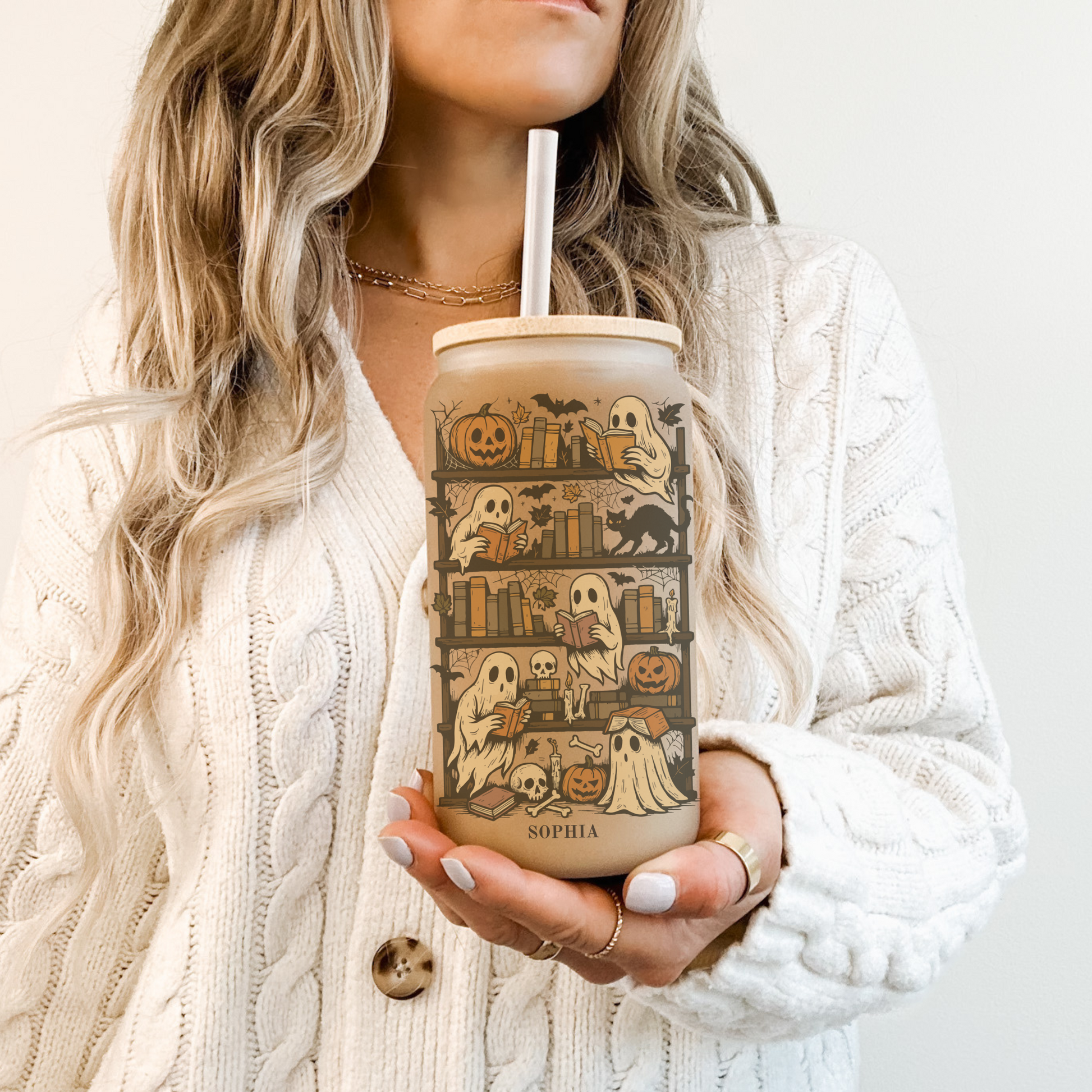 ✨ Frosted Glass Cup with Bamboo Lid & Straw – 16oz ☕🧊